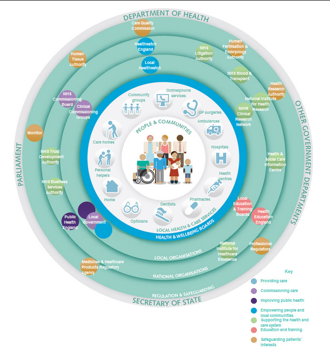 Onion diagram showing the different organisations and people involved in the NHS system